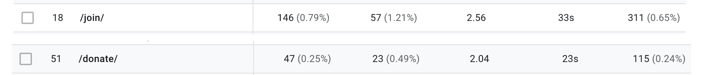 Engagement rates on donation and membership pages