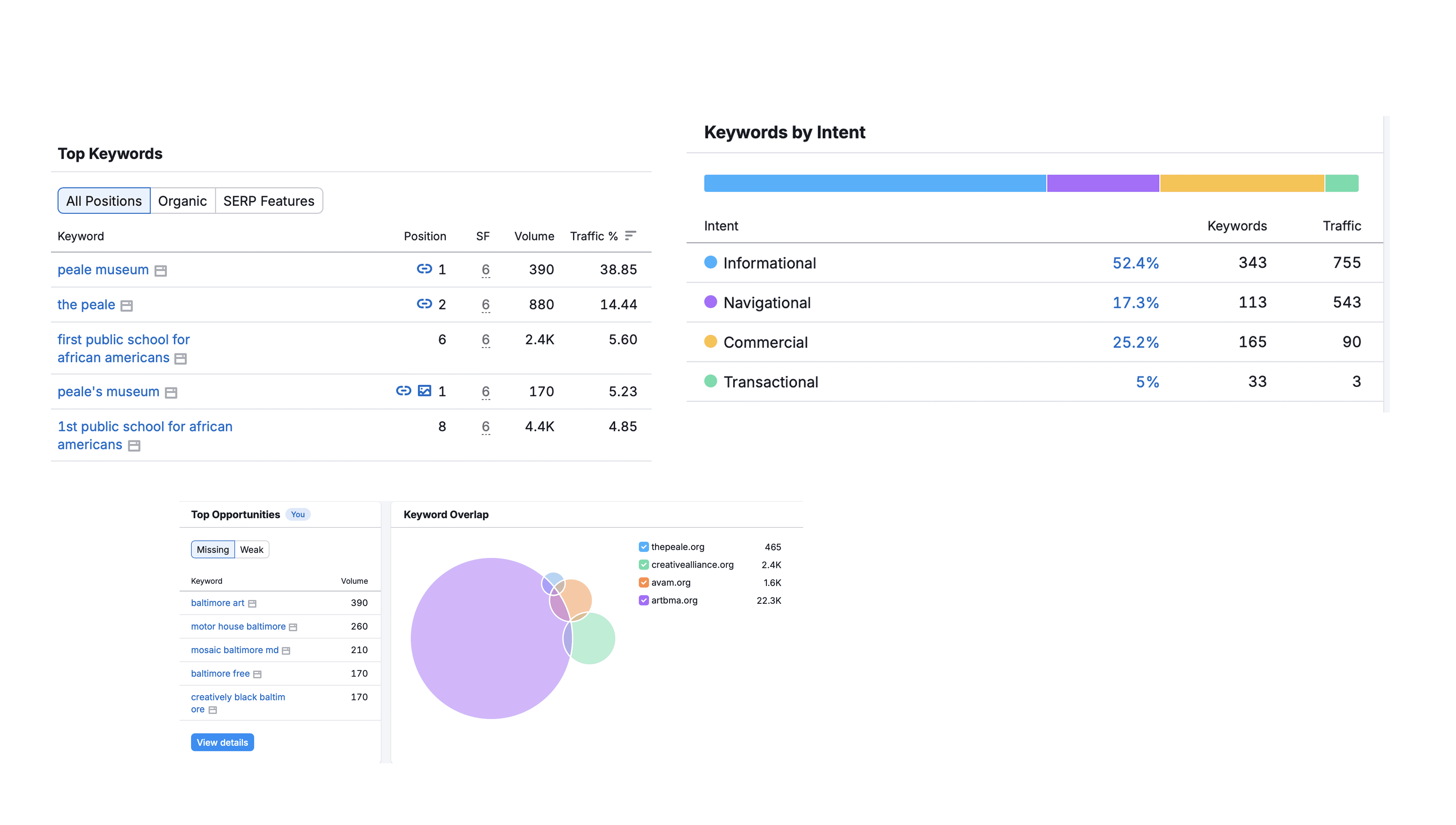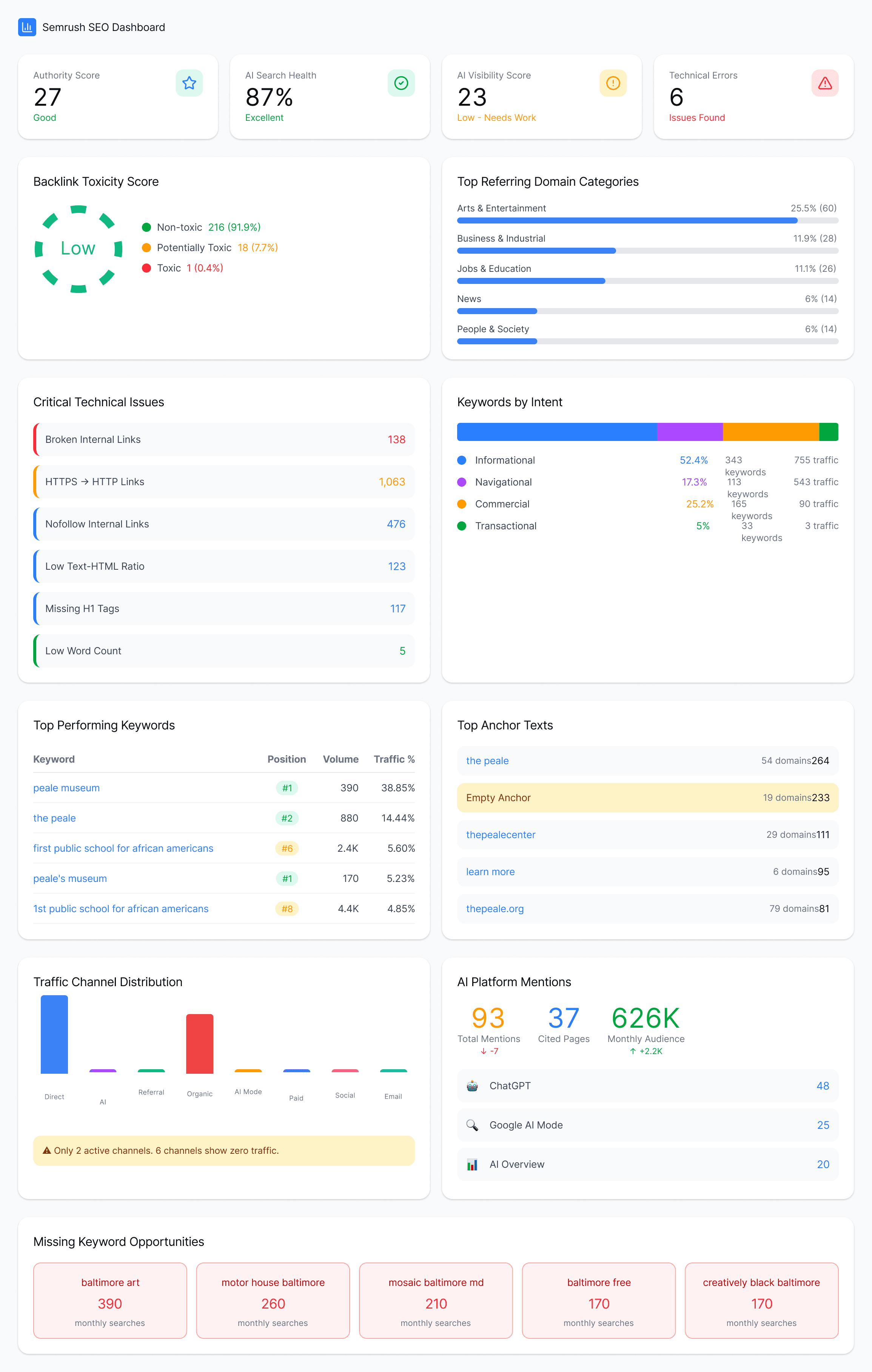 We also propose expanding content to rank for more keywords by covering topics like Baltimore history, African American heritage, local artists, museum events, cultural tourism