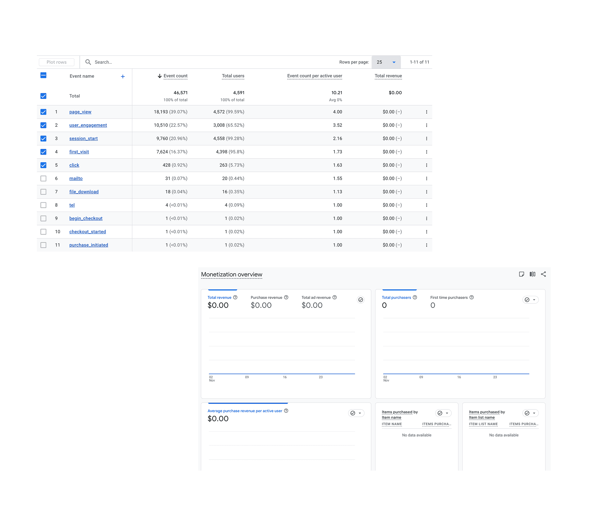 Currently, enough events related to conversion such as membership sign ups, donations, volunteering etc. aren't being tracked. Additionally, the current monetization dashboard is empty and features regarding purchase journeys and transactions aren’t being utilized.