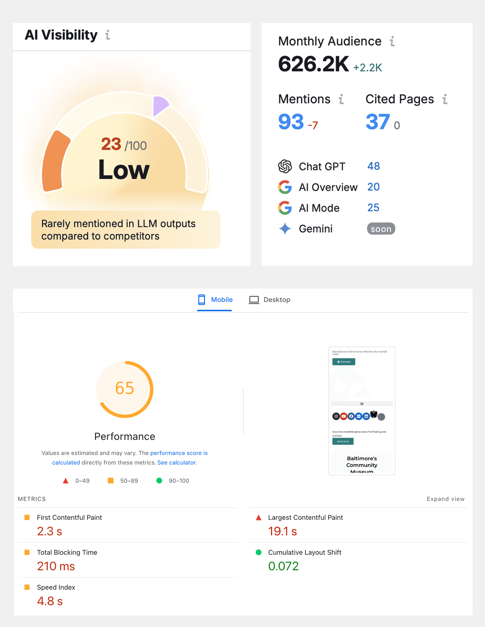 Low AI search visibility and poor mobile performance
