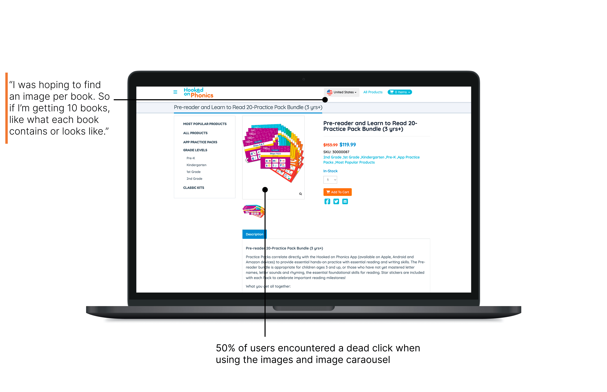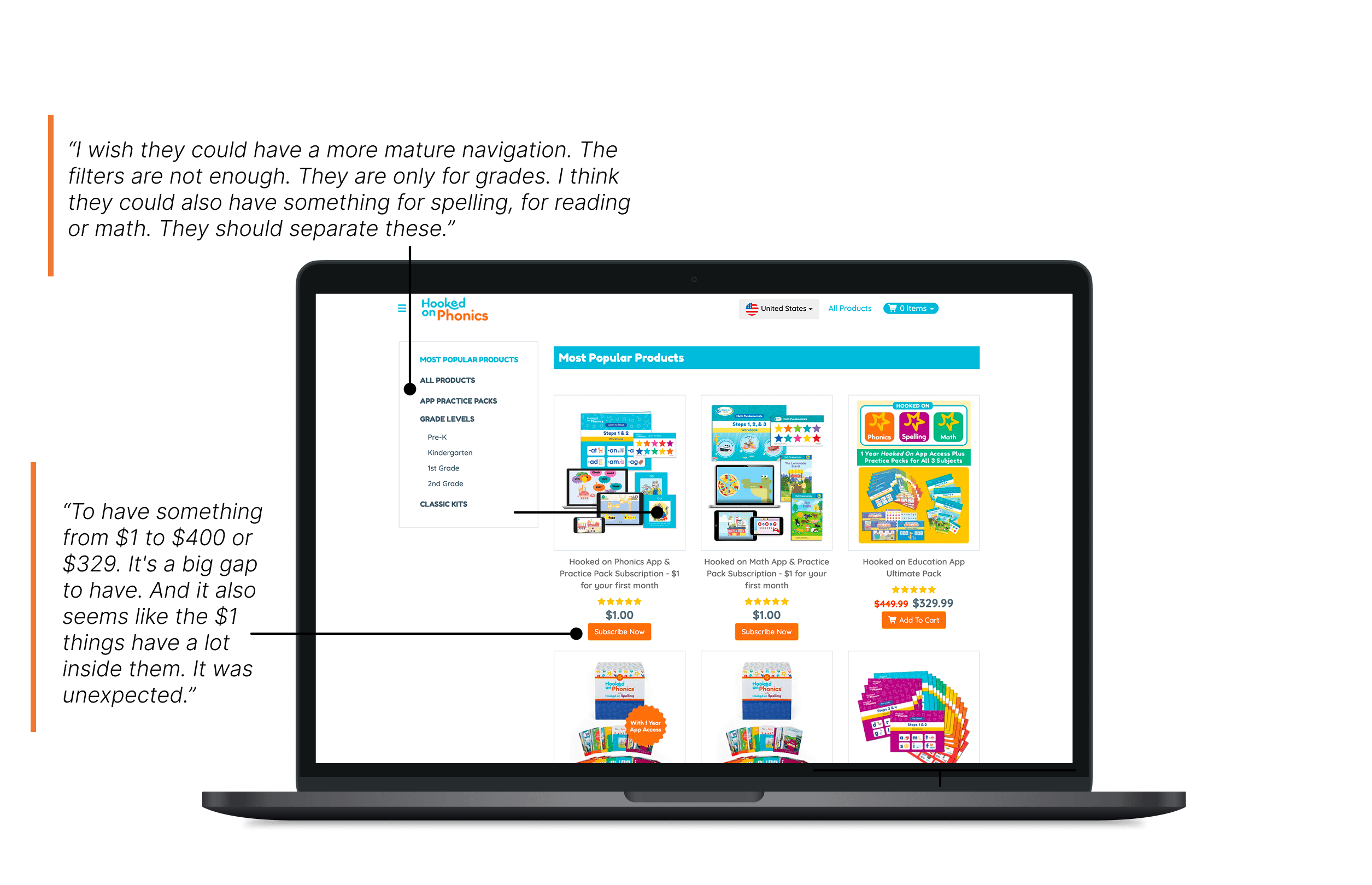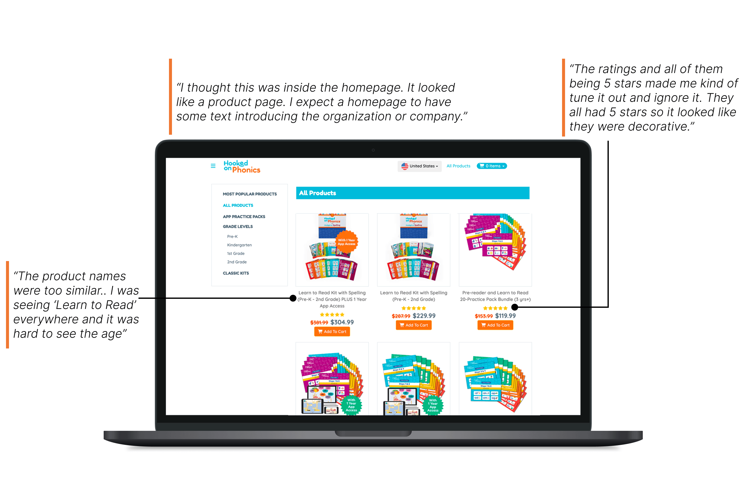 But why exactly did participants rate the Hooked on Phonics shop page so low and so difficult to use? Here's what explains the low score
